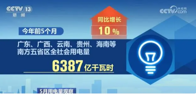 央視網消息:用電量數據一直被看作經濟運行的“晴雨表”,從國家發(fā)展改革委等部門近日公布的數據中可以看到,5月份,我國東、中、西部及東北地區(qū)全社會用電量均實現(xiàn)正增長,電力消費延續(xù)平穩(wěn)較快增長勢頭。